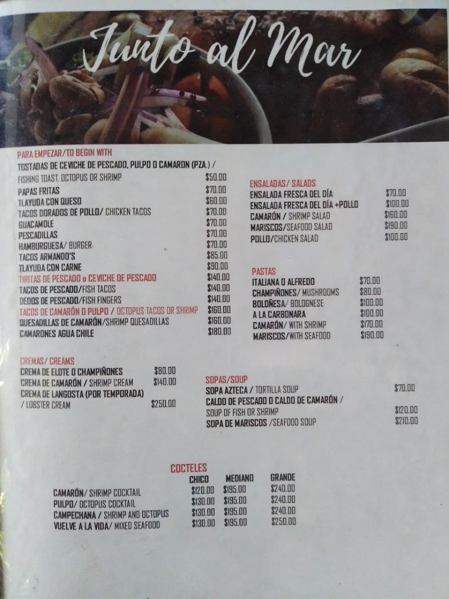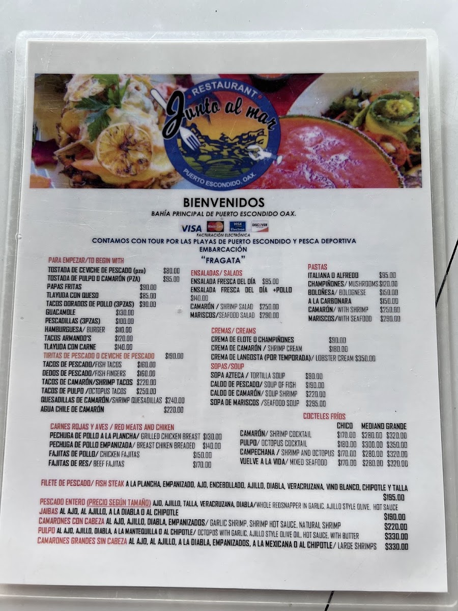 Restaurante Junto al Mar Menu